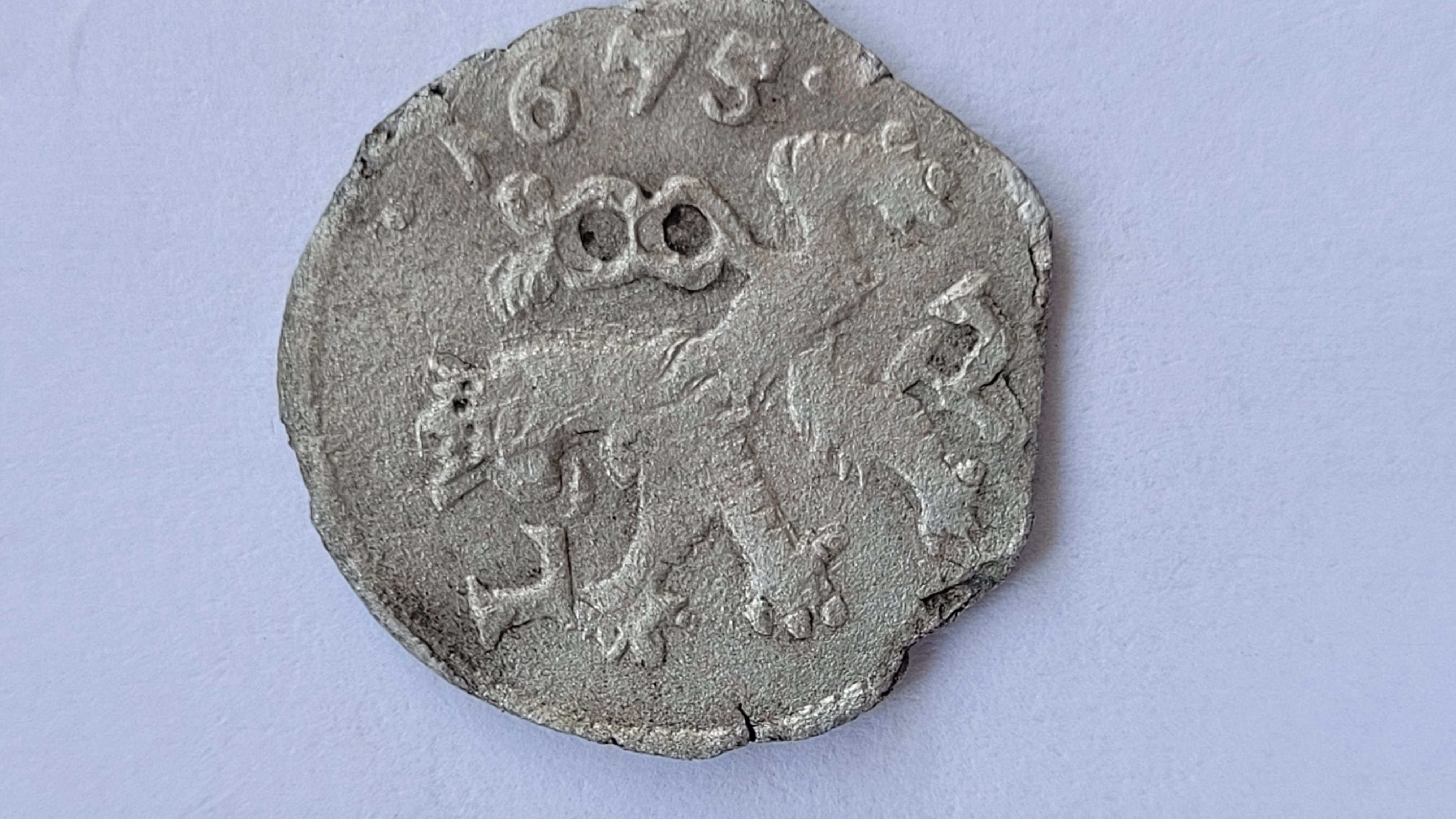 Ahoj, prosím o určení mince. Velká je zhruba jako pražský groš, stříbrná ale místy zlatavá. Nevim jestli to je zbytek pozlacení nebo chemická reakce. Děkuji.