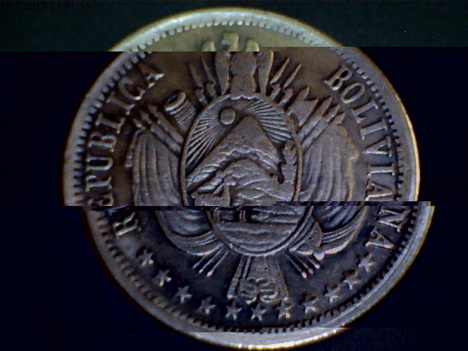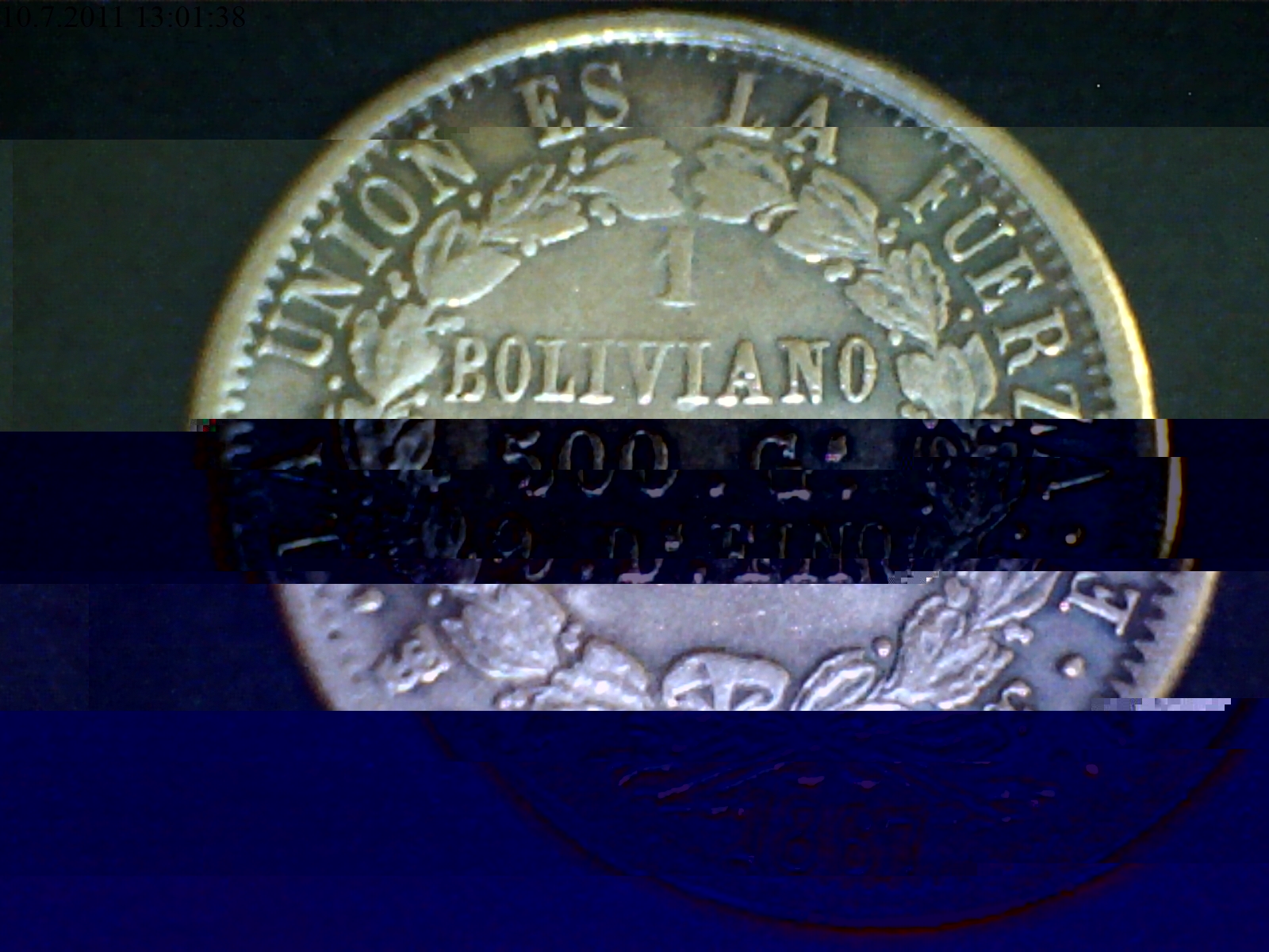 první mince - Bolivie, 1 boliviano, 1867PTS FE