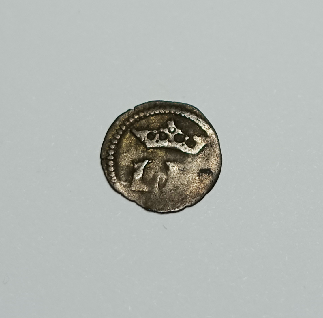 Myslím že jde o pražský půlgroš Ludvíka l. průměr mince 12 mm, ale nejsem si tím jistý.....