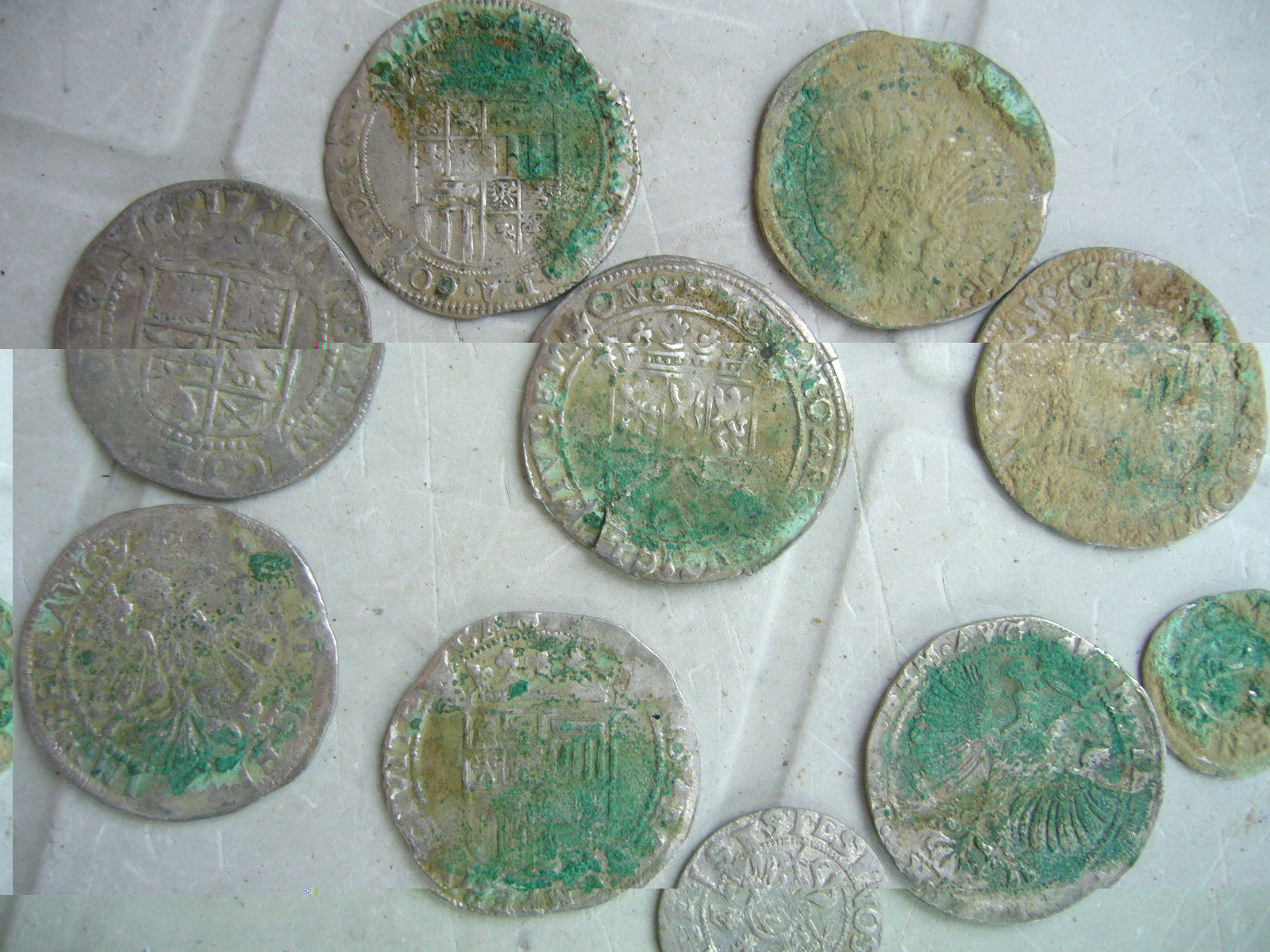 Doporučuju nejdřív vzít kyselinou citronovou a mince ní promnout. a pak poslat fotky