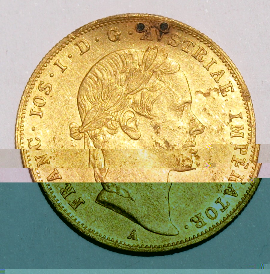 mince j poškozená bývalým závěsem. Má cenuzlata pouze. tedy 3,49*0,986*832 = +- 2850 korun.
