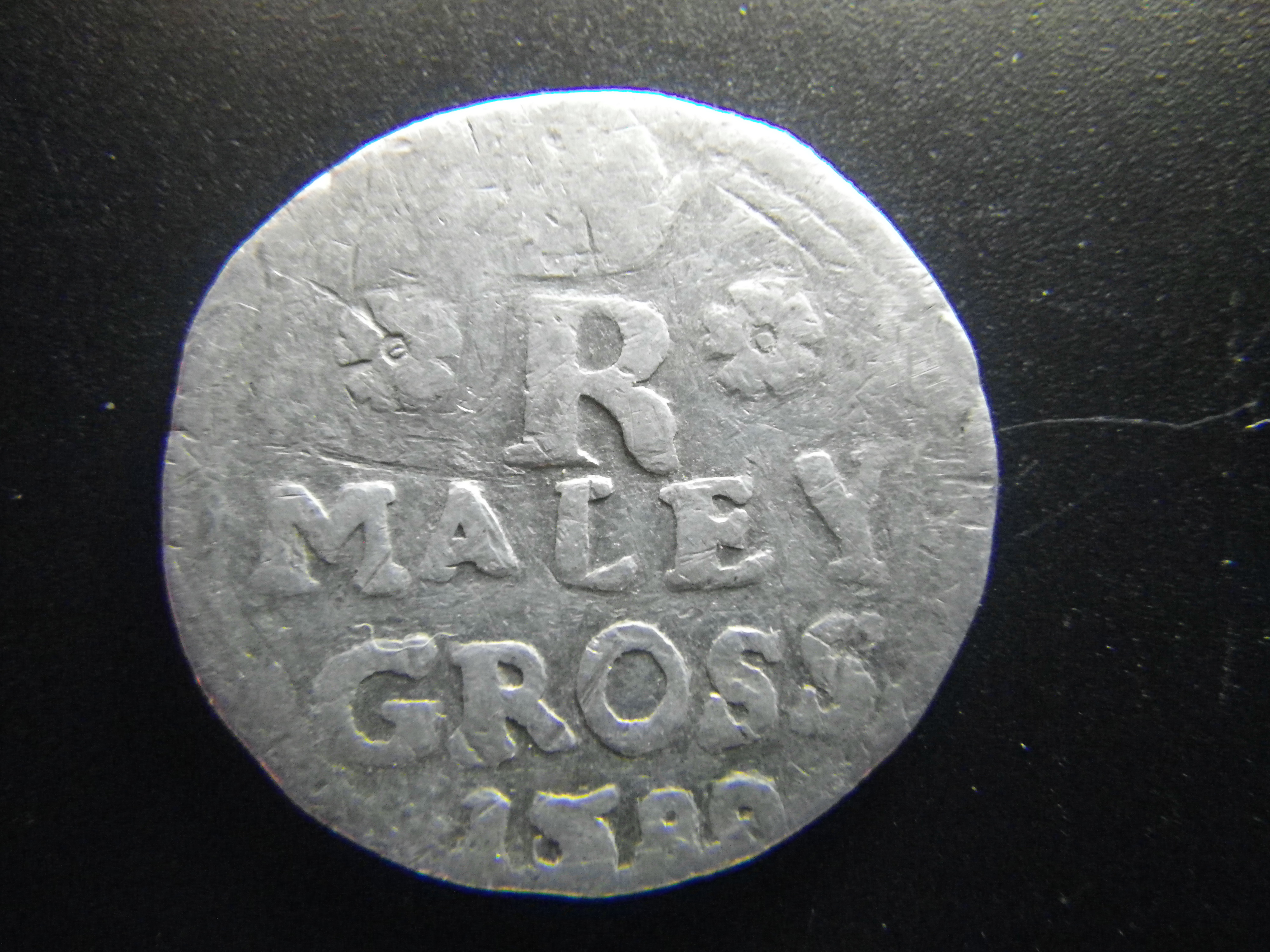 Prosím o pomoc s přesným určení mince, ev. odhad ceny. Zjevně se jedná o Maley Gross z r. 1588(9?). Průměr je cca 18 mm. Trochu mne mate jeho hmotnost. Dohledal jsem si, že měl mít ražební hmotnost 1,055 g a tento má 1,77 g (?)