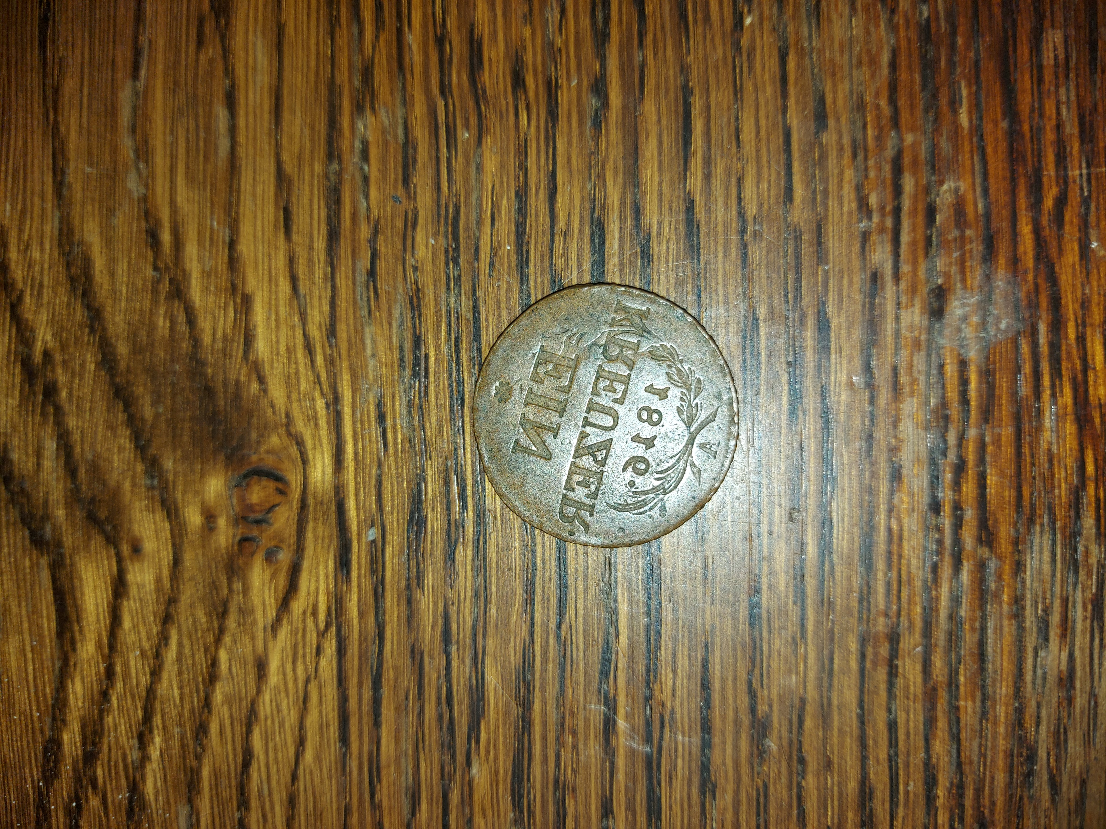 1) původní mincí byl krejcar Marie Terezie z roku 1780 který byl přeražen. Lze to poznat podle pozůstatků ražby původní mince.