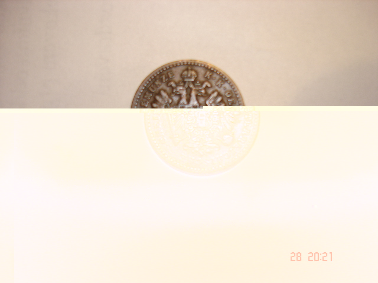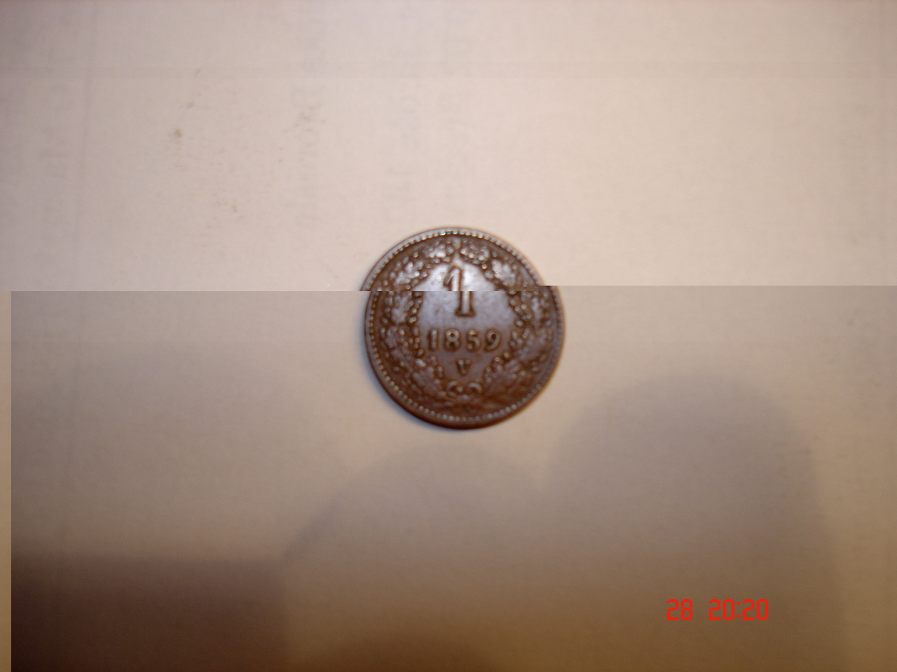 - Kovová koruna K. K. Osterreichische Scheidemunze, rok 1859, váha 3,1g, průměr 1,9cm.