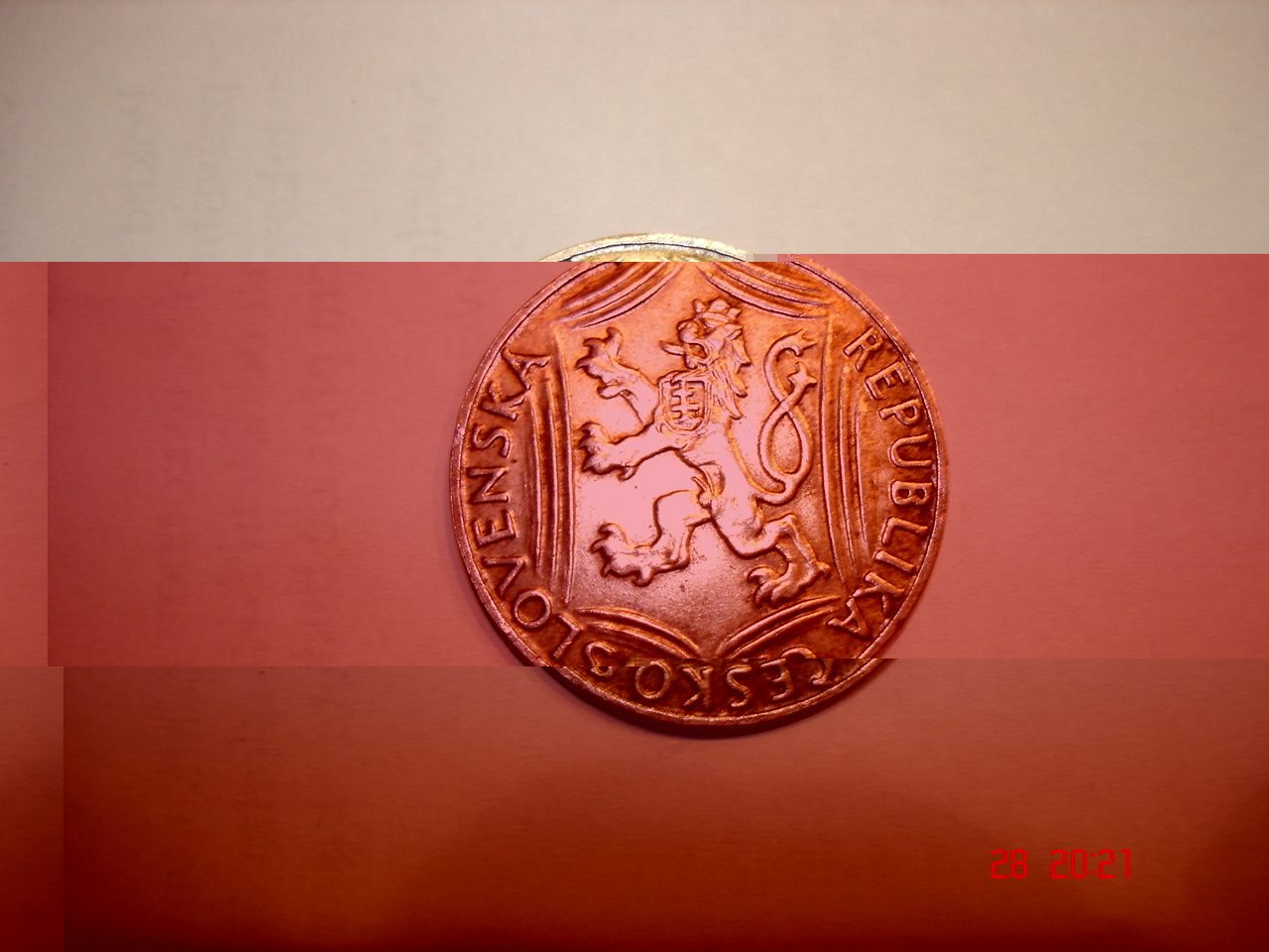 - Kovová stokoruna, Republika Československá, rok 1918 - 1948, váha 13,9g, průměr 3,1cm